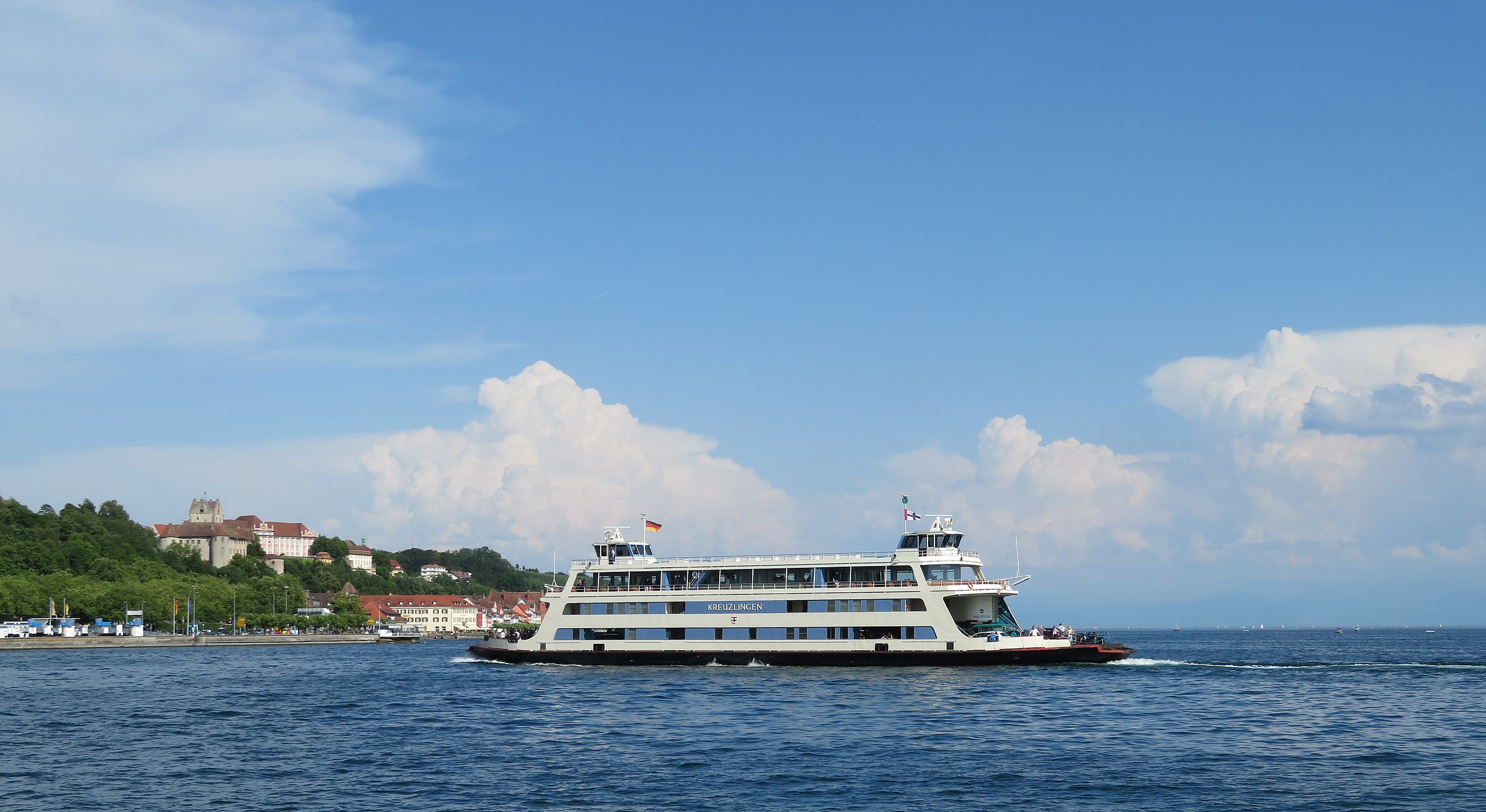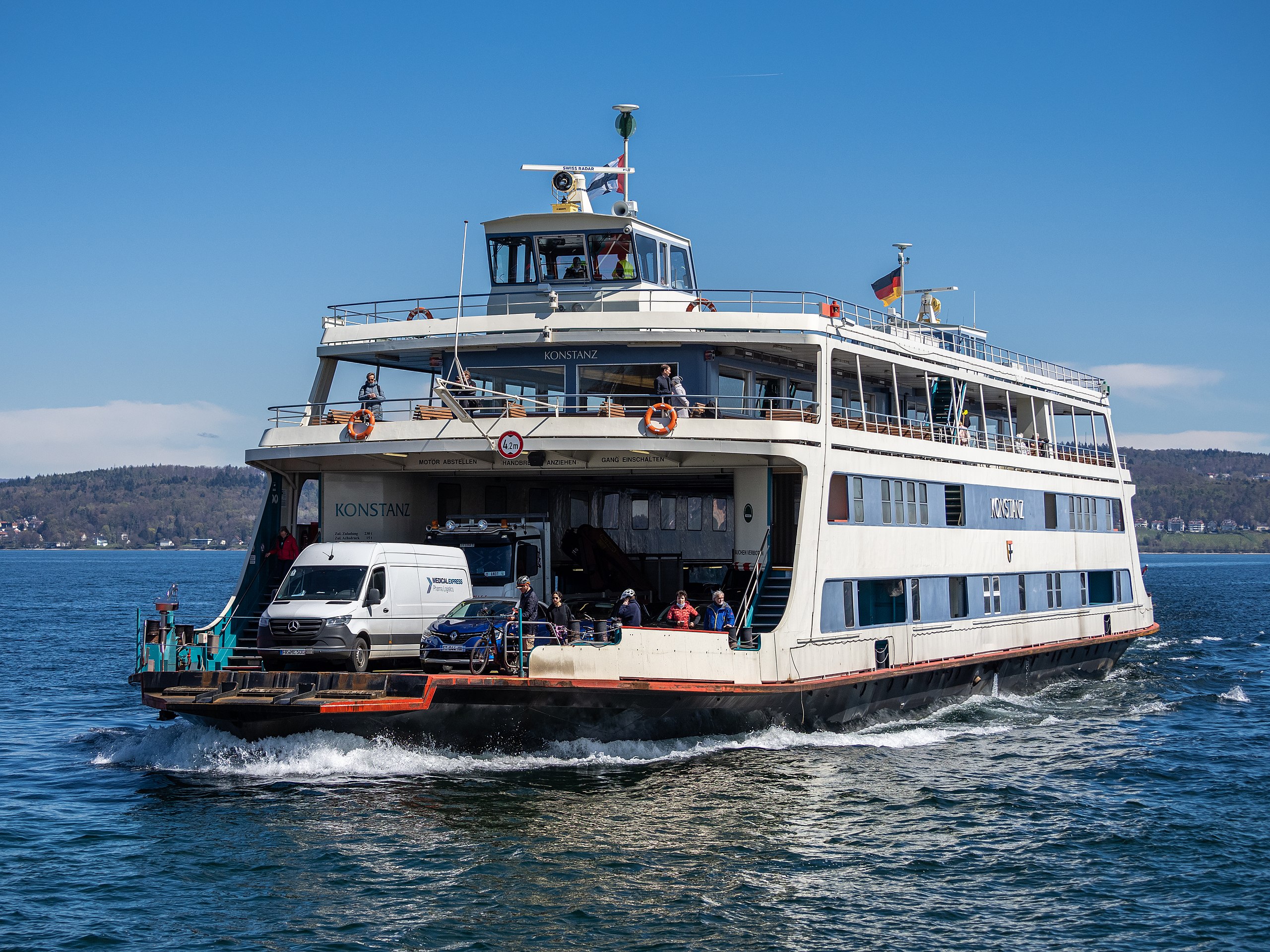 Die Fährverbindung zwischen den beiden Städten Konstanz und Meersburg schlägt eine schwimmende Brücke über den Bodensee. Wer die Fähre Konstanz-Meersburg nutzt, spart etwa 45 Fahrzeug-Kilometer und damit viele schädliche Emissionen.