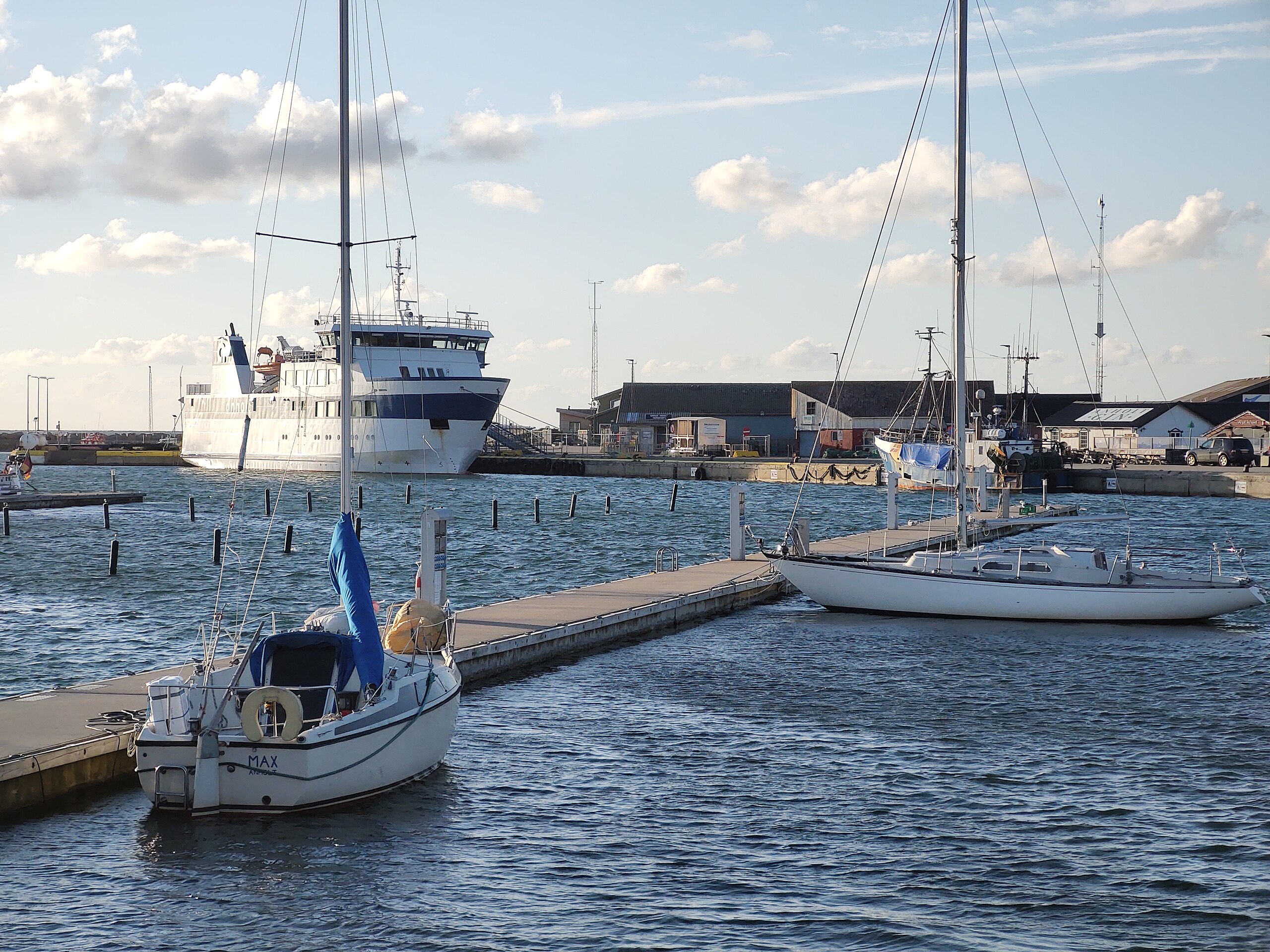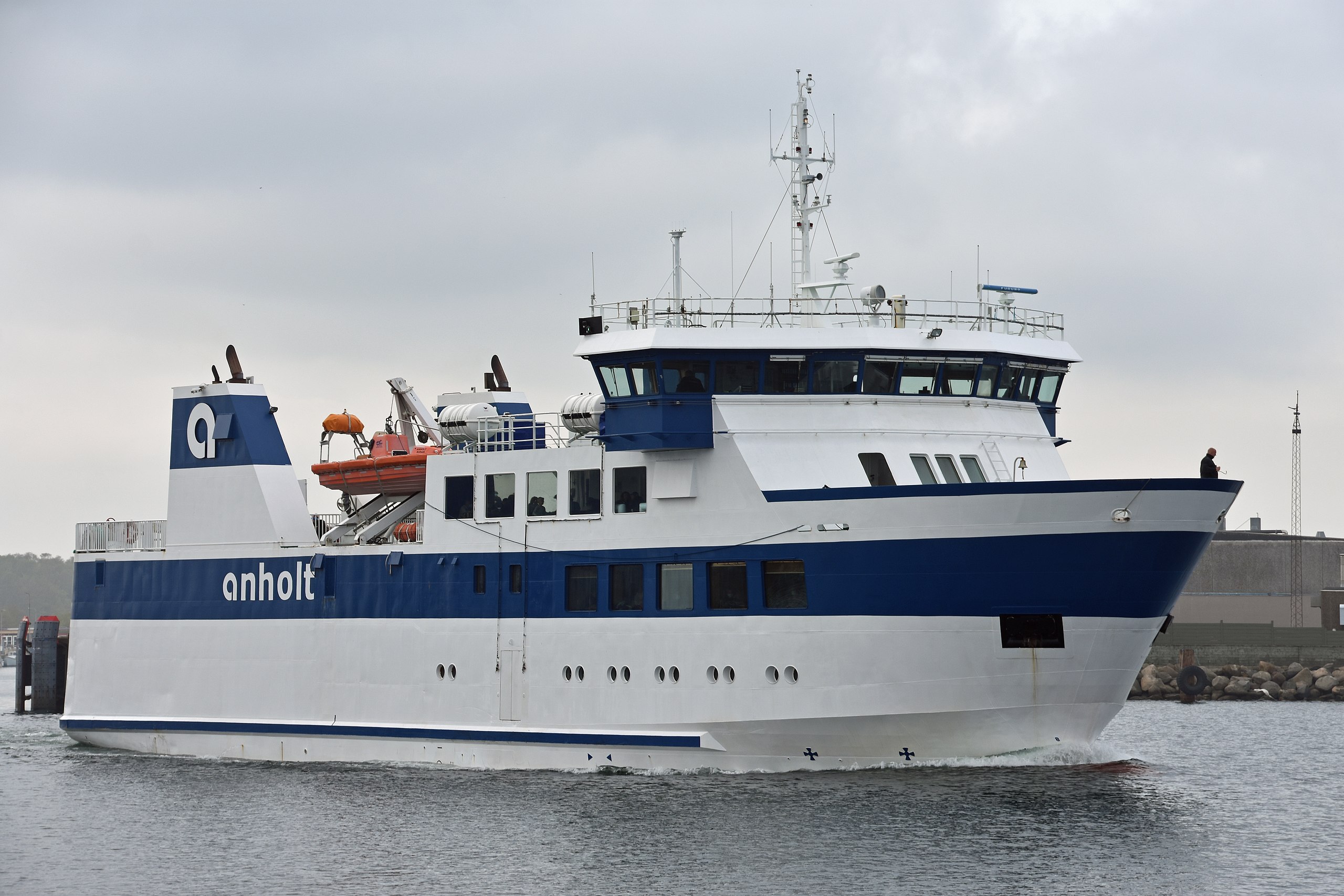 Die Reederei Grenaa-Anholt Færgefart verbindet Anholt mit Grenaa auf dem dänischen Festland. Die Fähre “Anholt” legt gegen 8:00 Uhr in Anholt ab, erreicht nach 3 Stunden Überfahrt am späten Vormittag Greena und beginnt um 13:00 Uhr die Rückreise nach Anholt. An einigen Tagen in der Hochsaison werden auch zwei Touren am Tag gefahren. Die Überfahrt dauert rund 3 Stunden. Das Foto zeigt die “Anholt” in Grenå – Foto: Thomas Dahlstrøm Nielsen, CC BY-SA 4.0 <https://creativecommons.org/licenses/by-sa/4.0>, via Wikimedia Commons