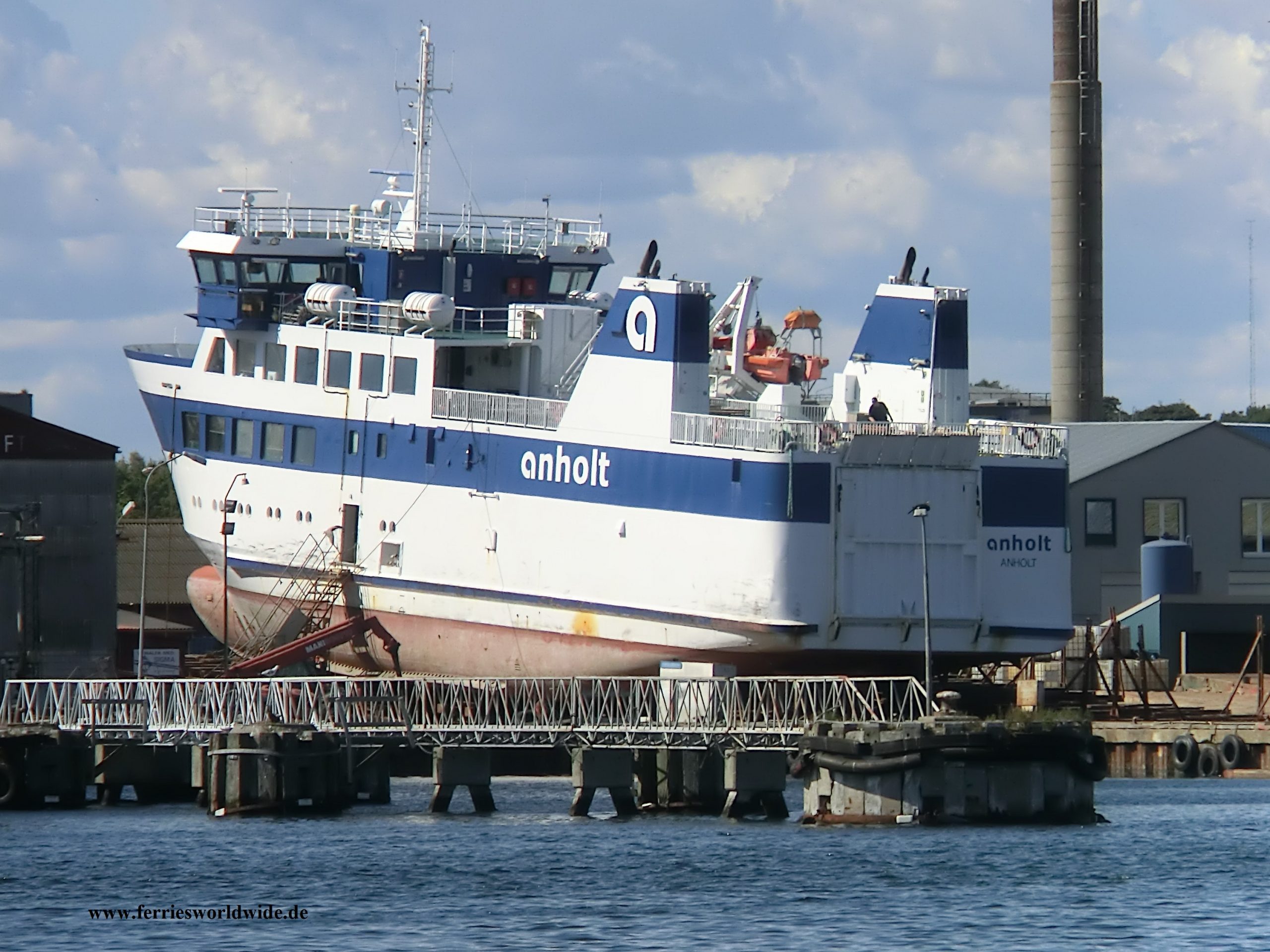 ) wurde 2003 auf der Riga Shipyard in Riga, Lettland gebaut und zur Endausrüstung zur Moen Slip AS in Kolvereid, Norwegen geschleppt. Am 24. März 203 wurde sie auf der Route Anholt – Grenaa in Dienst gestellt. Die “Anholt” ist 48,0 Meter lang, 11,4 Meter breit und hat einen maximalen Tiefgang von 2,60 Meter. Sie kann 9 PKW transportieren und ist für 244 Passagiere zugelassen. Die Motorisierung besteht aus zwei Grenaa Diesel-Hauptmotoren Typ 6FS24TK mit einer Gesamtleistung von 1.290 kW, die zwei Azimutpropeller antreiben. Foto: S. Scharrer, www.ferriesworldwide.de