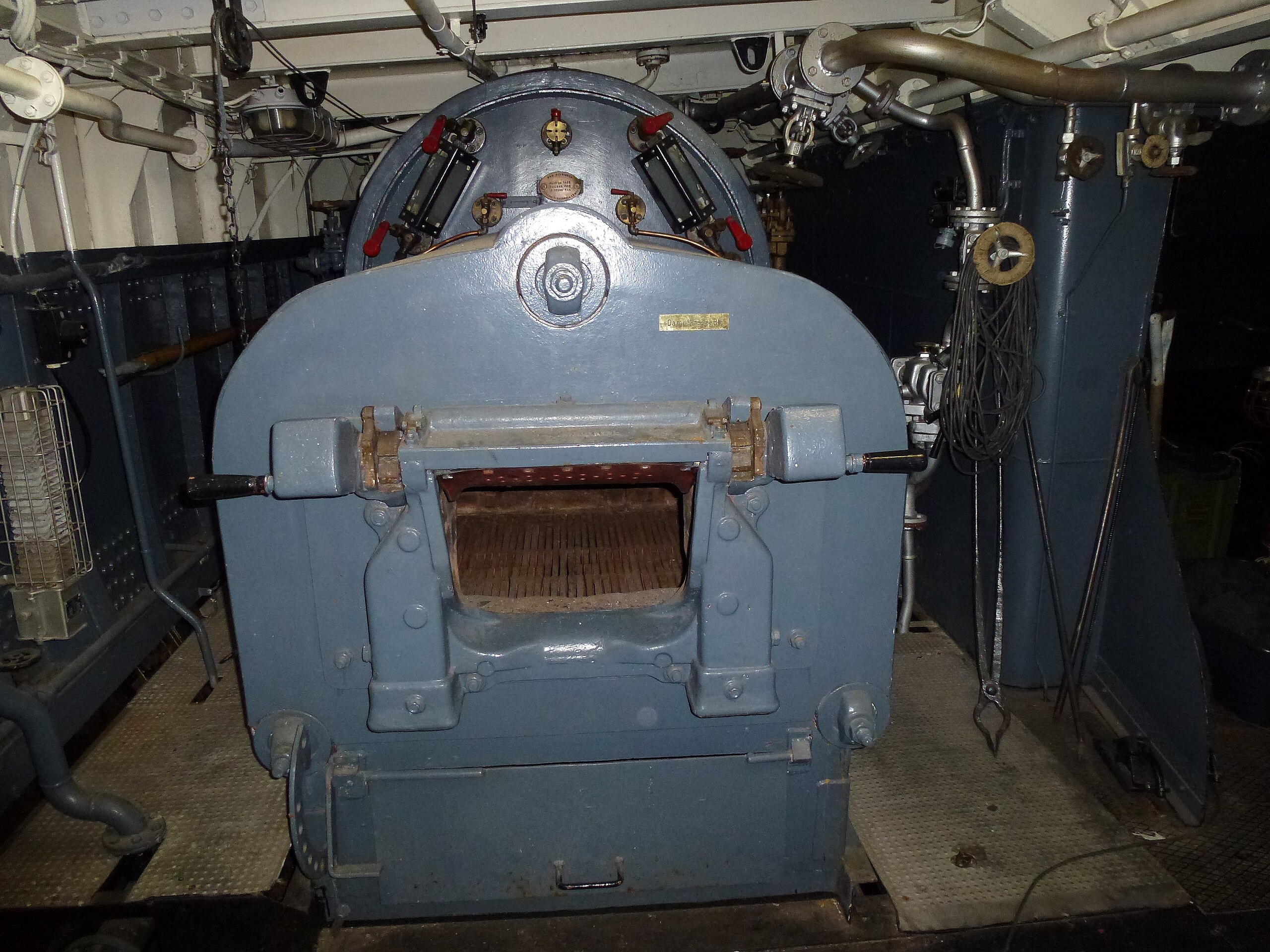 Einer der beiden Heizkessel auf der “Stralsund” – Foto: McKarri, CC BY-SA 3.0 <https://creativecommons.org/licenses/by-sa/3.0>, via Wikimedia Commons