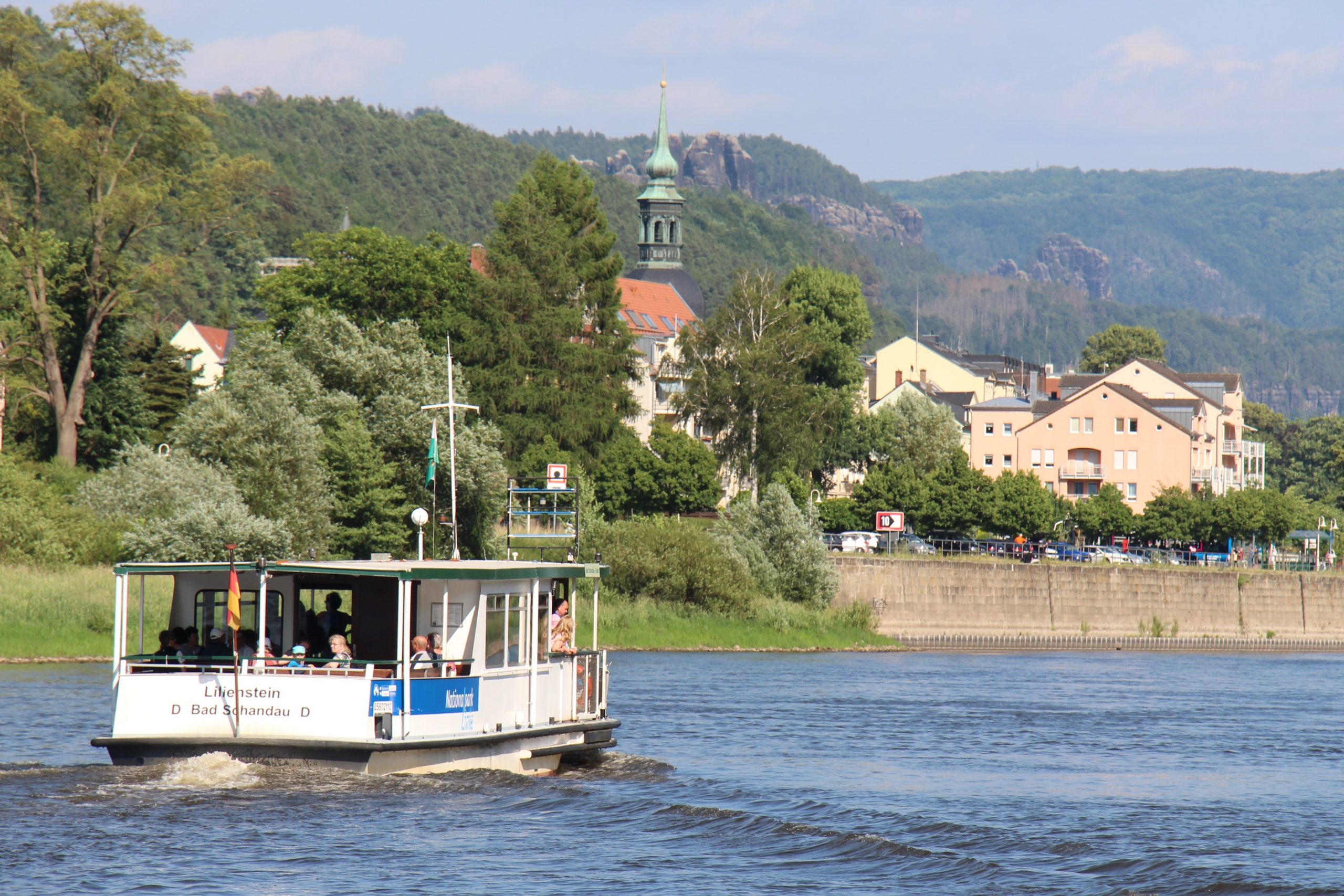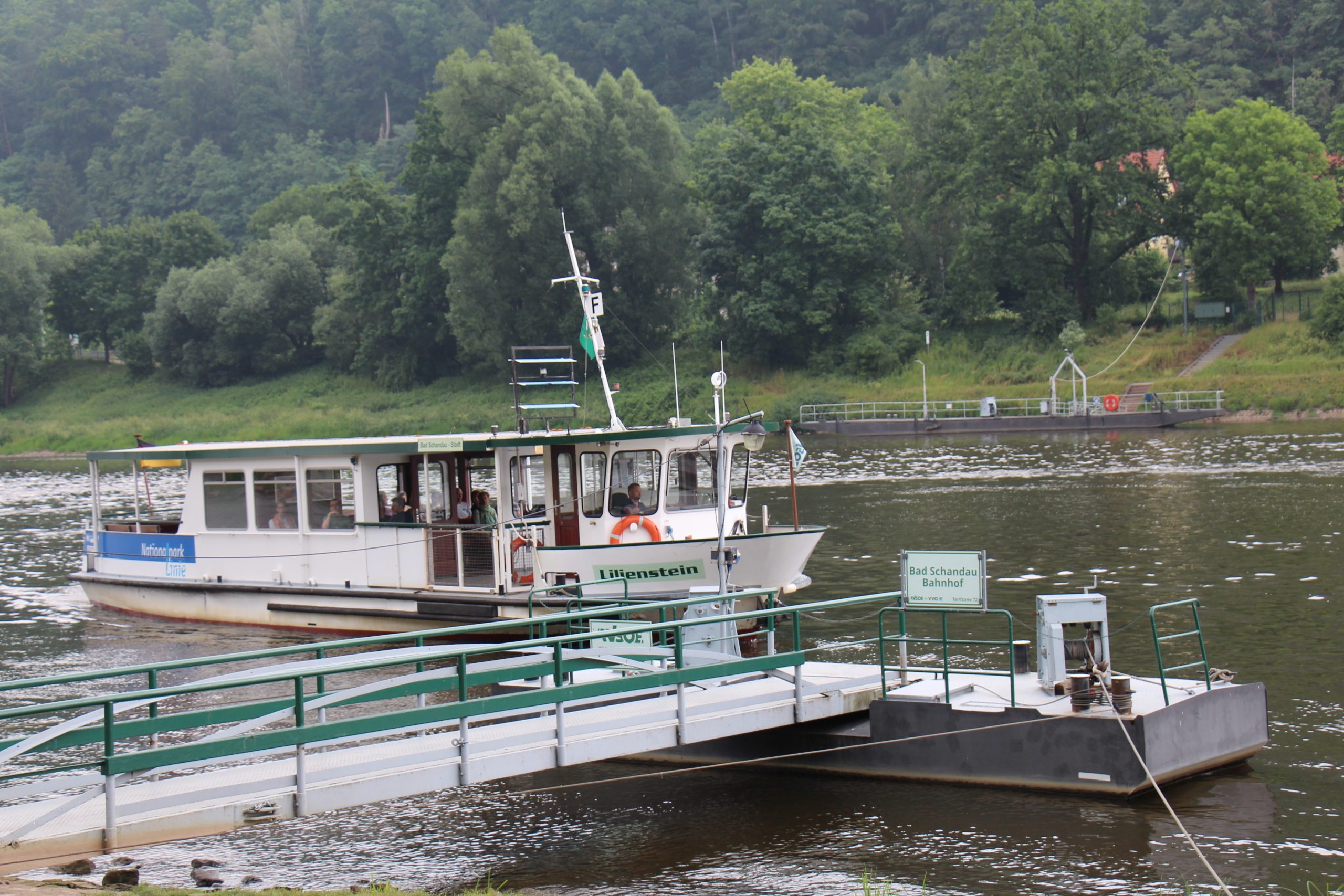 Bad Schandau ist eine sächsische Kleinstadt im Landkreis Sächsische Schweiz-Osterzgebirge an der Elbe. Eine Personenfähre verbindet den Nationalparkbahnhof Bad Schandau mit dem Elbkai im Ortszentrum auf der anderen Elbseite. Die Fähre wird als F5 vom Regionalverkehr Sächsische Schweiz-Osterzgebirge GmbH betrieben und verkehrt üblicherweise von 5:00 Uhr bis 22:00 Uhr alle 30 Minuten. Den aktuellen Fahrplan entnehmen Sie bitte dem link rechts. Eingesetzt werden wechselnde Fährboote, aber üblicherweise verkehrt auf dieser Verbindung das Fährboot “Lilienstein”.