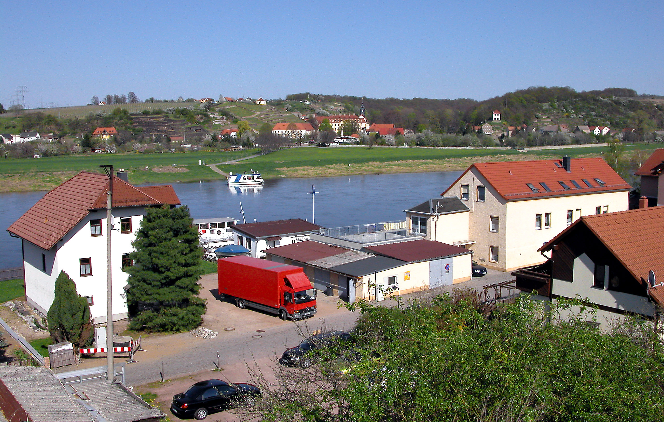 Die Elbe bei Niederlommatzsch mit dem Fährboot “Stolzenfels” – Foto: Jörg Blobelt, CC BY-SA 4.0 <https://creativecommons.org/licenses/by-sa/4.0>, via Wikimedia Commons