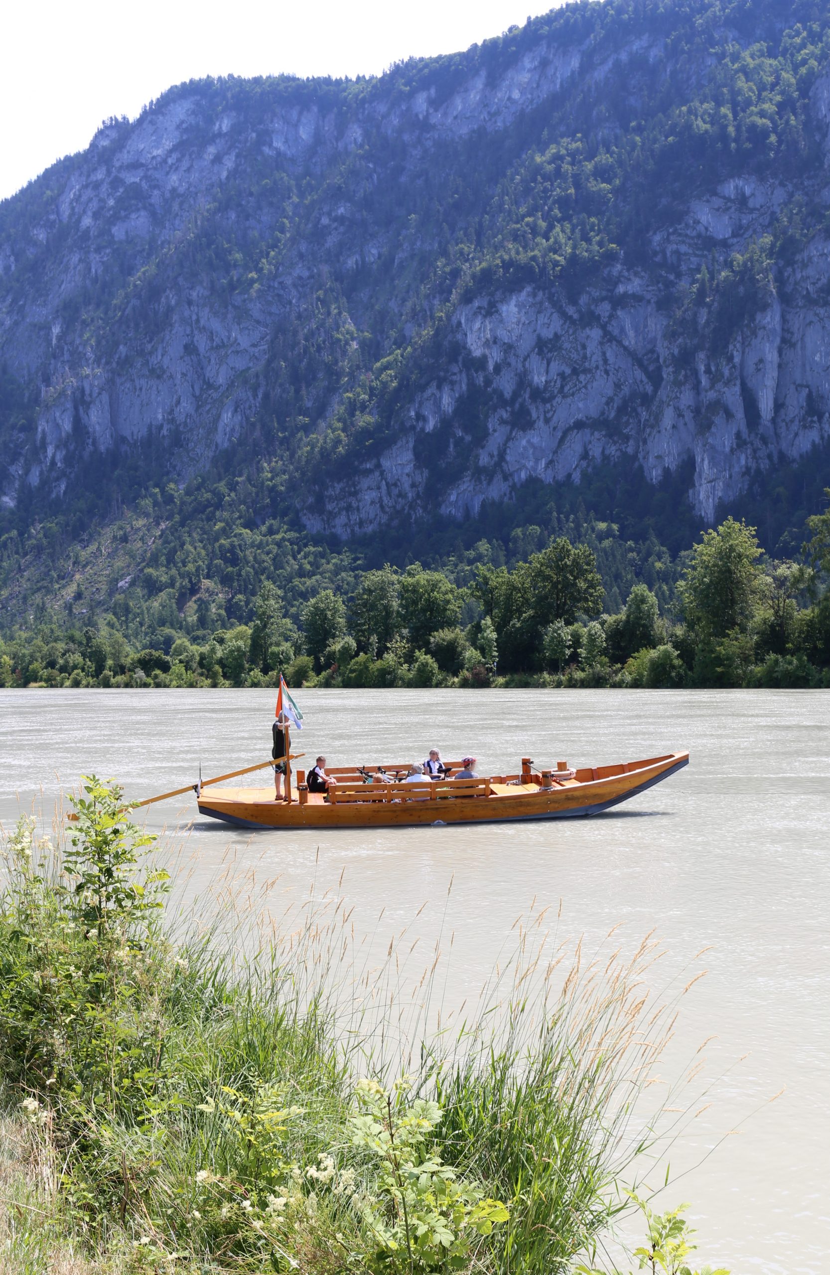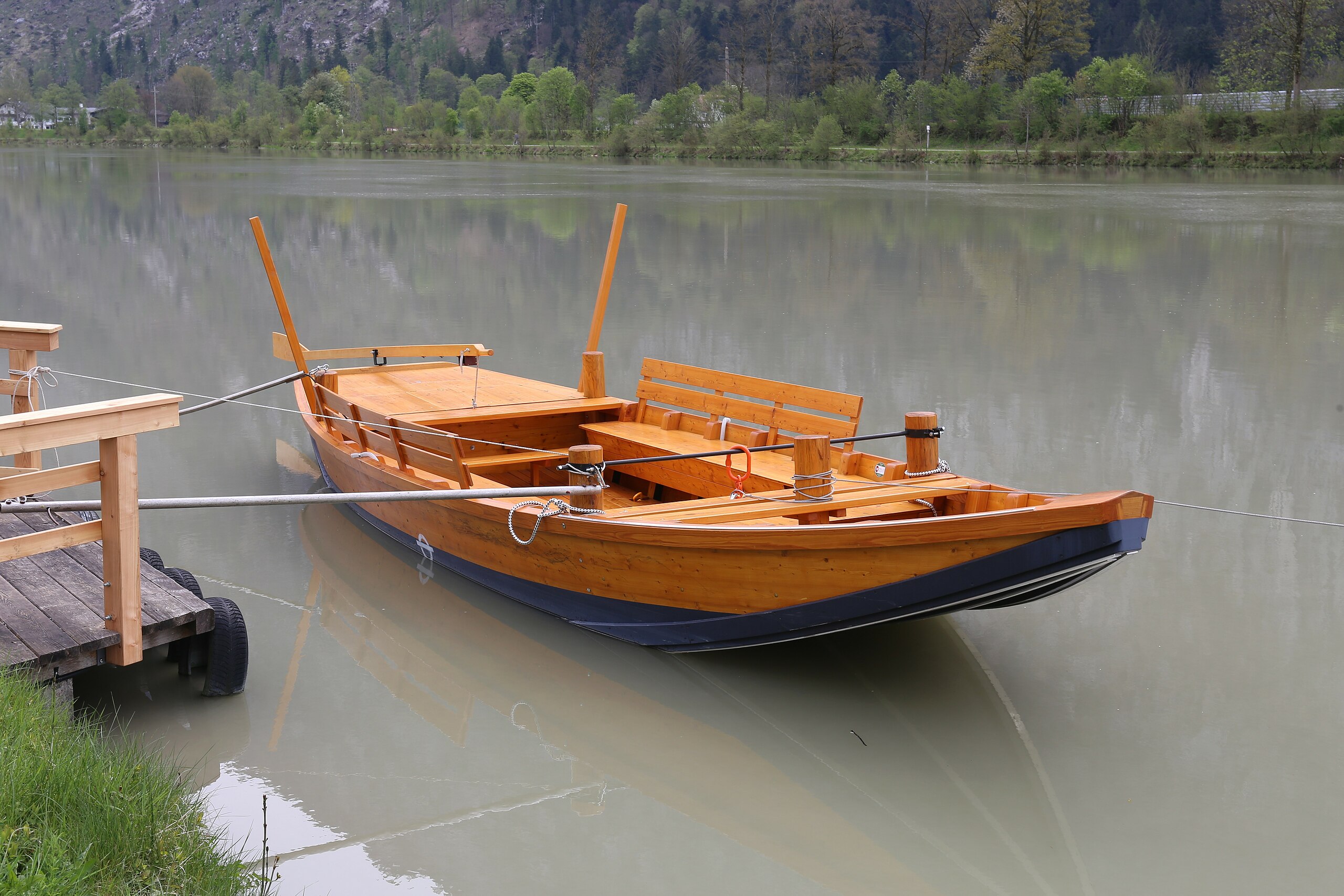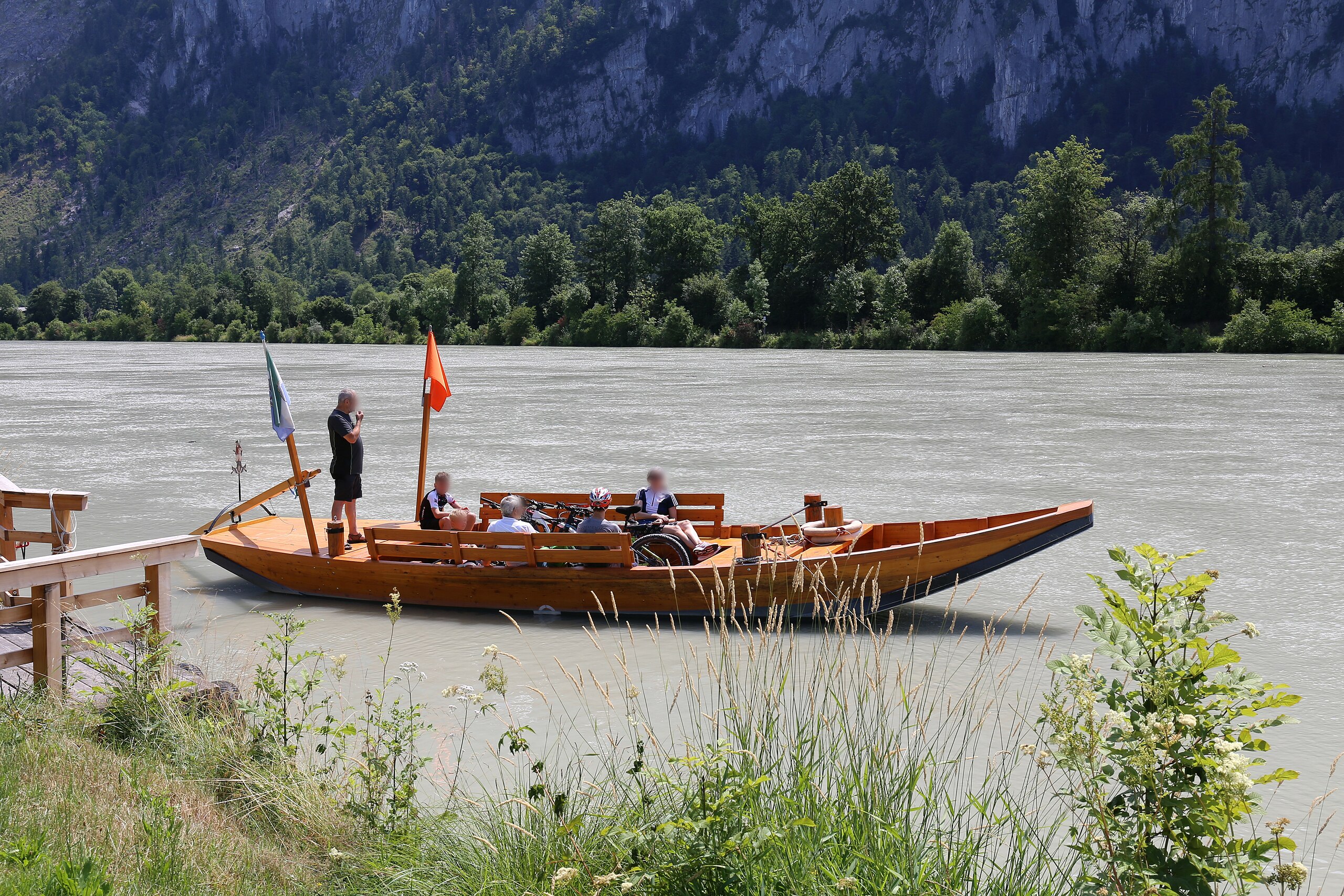 Die nach alter Handwerkskunst hergestellte, aus Lärchenholz angefertigte, 10 Meter lange und 2,80 Meter breite Fähre bietet 10 Fahrgästen und zusätzlich Fahrrädern Platz. Die Fähre wird an einem Hochseil sicher von Innufer zu Innufer geführt.