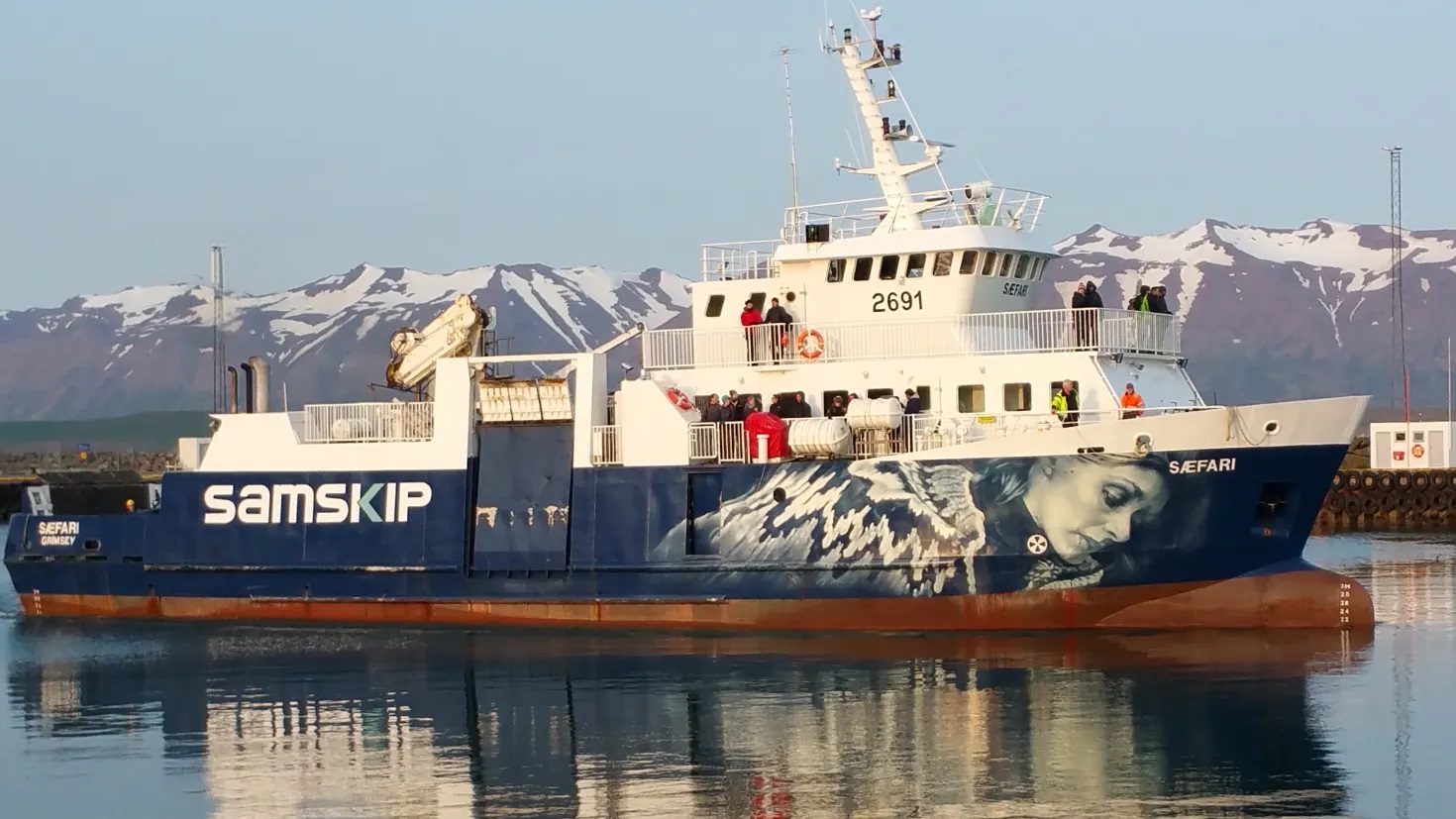 Der Hafen Dalvik liegt 45 km (ca. 40 Autominuten) nördlich von Akureyri. Die Fähre “Sæfari” der Reederei Samskip verkehrt im Sommer 5x die Woche, im Winter 3-4x die Woche von Dalvik nach Grimsey. Die Fahrzeit beträgt ungefähr drei Stunden, bei Sturm wesentlich länger. Es wird bei fast jedem Wetter gefahren. Die Fähre muss im Voraus über die Icelandic Road and Coastal Administration (IRCA) gebucht werden.