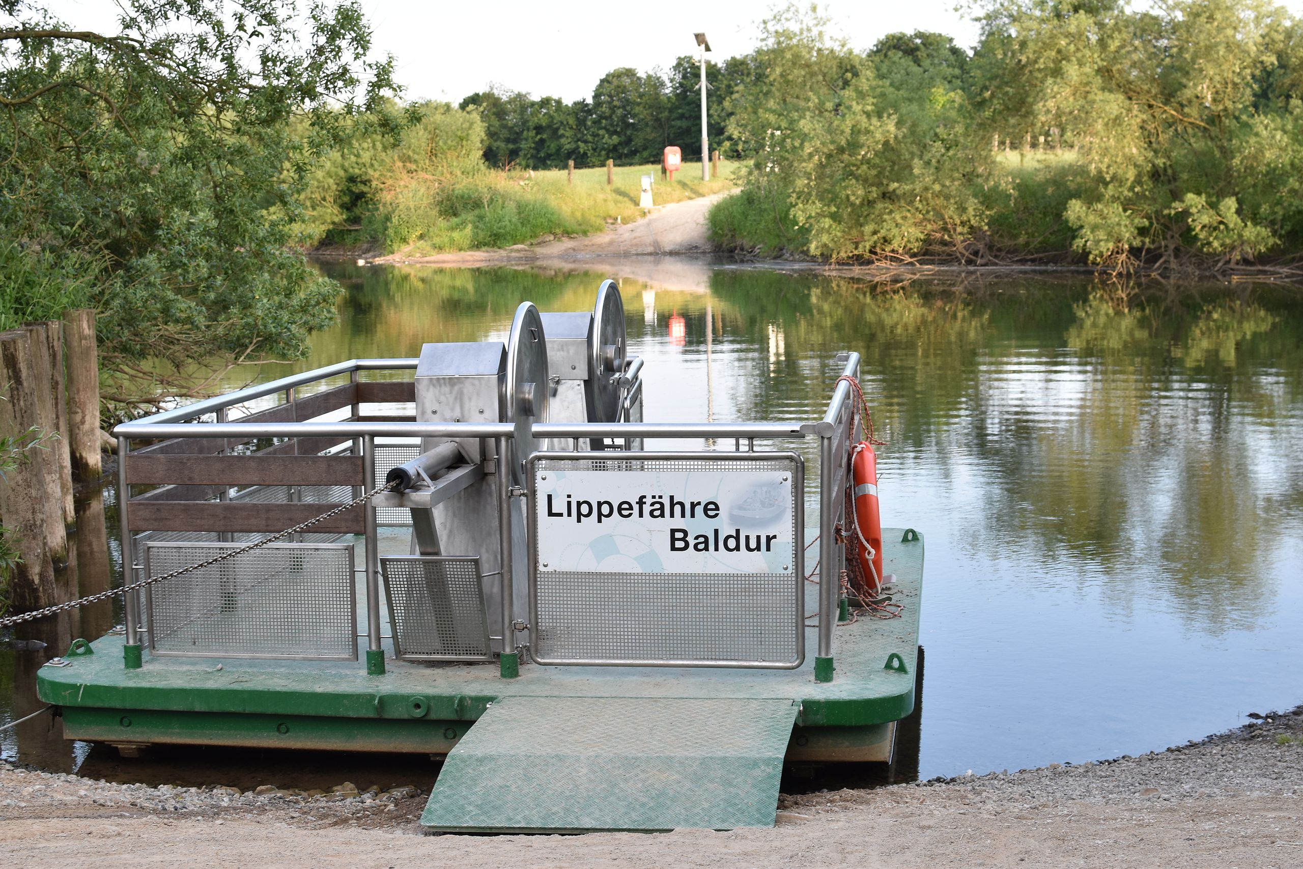 Die 2005 in Dienst gestellte Kurbelfähre erhielt ihren Namen von der Schachtanlage Baldur, die im Süden von Dorsten in den 1920er Jahren Kohle förderte. Damals querte ein kleines hölzernes Fährboot die Lippe, um die Bergleute zur Schicht zu bringen. Heute verbindet die Fähre die Dorstener Stadtteile Holsterhausen und Hardt. Pro Fahrt können acht Personen die Lippe überqueren.