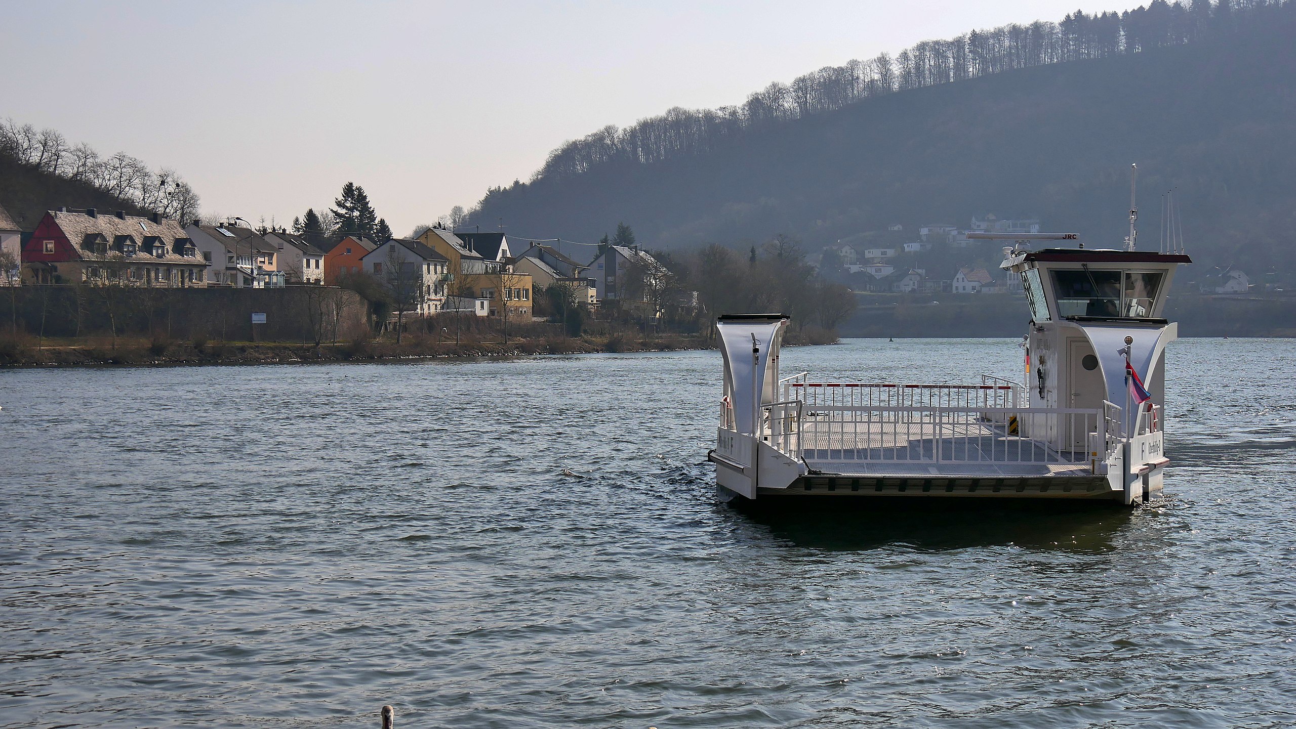 Die einzige internationale Fähre auf der Mosel verkehrt bei Flußkilometer 206 zwischen Wasserbillig in Luxemburg und dem deutschen Oberbillig auf dem rechten Moselufer. Der Fluss hat dort eine Breite von circa 100 Meter. Eingesetzt wird dort die elektrisch betriebene Fähre “Sankta Maria II”. Die Fähre ersetzt seit November 2017 die alte Fähre “Sankta Maria“, die jährlich etwa 14.000 Liter Dieselkraftstoff verbrauchte.