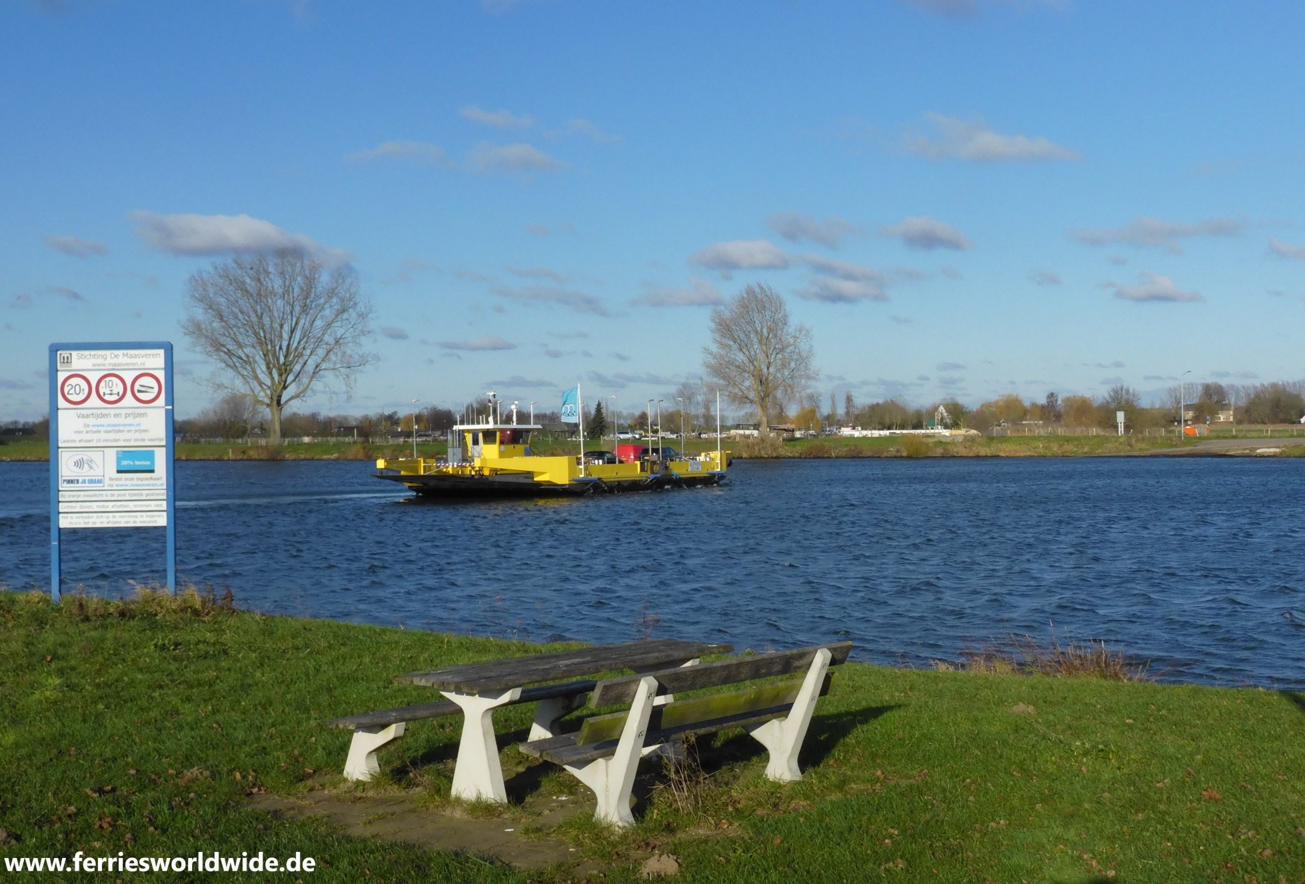 Die Fährstelle Alphen – Oijen an der Maas mit der Doppelendfähre “Alphen” – Foto: Ulrich Repp, www.ferriesworldwide.de