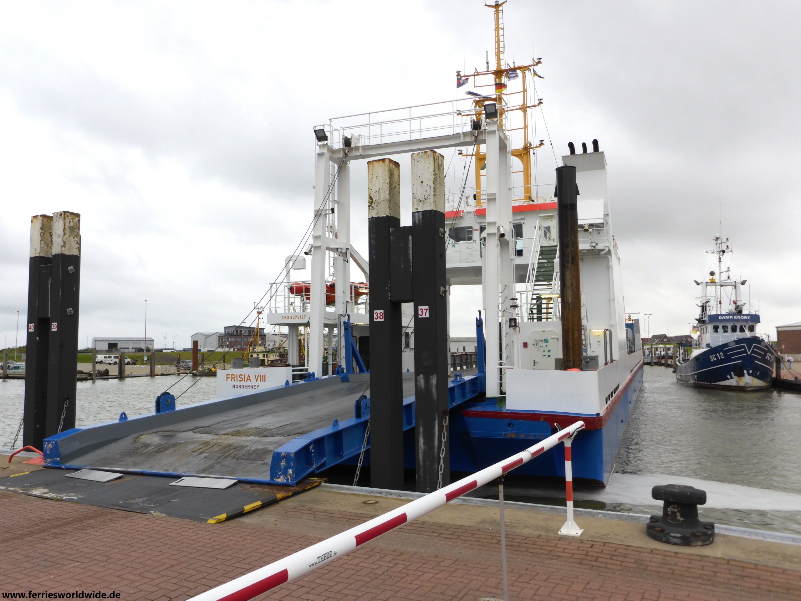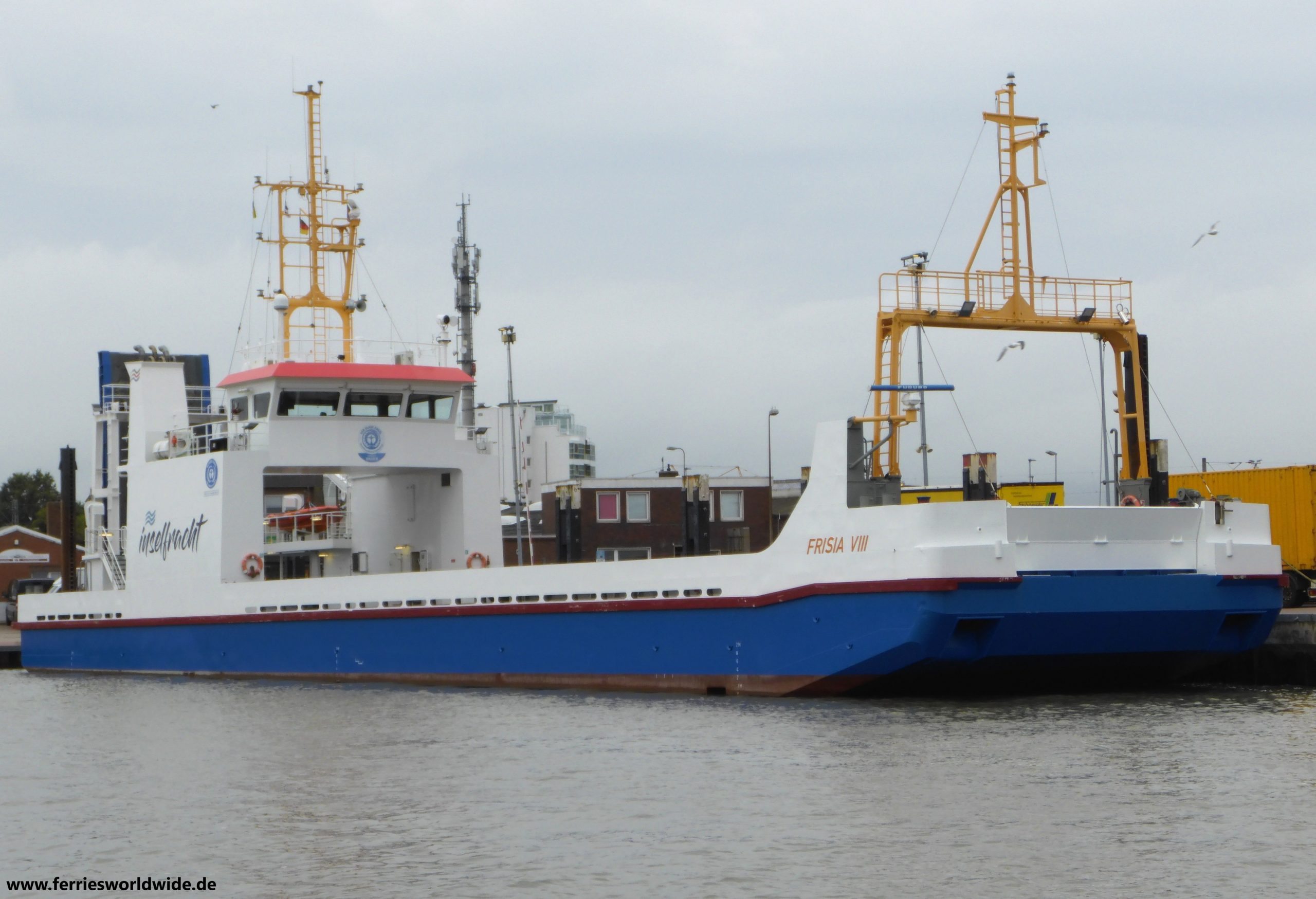 Die Maschinenanlage besteht aus zwei Volvo-Penta Dieselmotoren Typ D16-MH 500 mit einer Gesamtleistung von 736 kW (ca. 1.001 PS), die auf zwei Festpropeller wirken. Die Höchstgeschwindigkeit beträgt 8,5 Knoten (ca. 16 km/h). Die “Frisia VIII” ist mit einem Partikelfilter und einer Abgasbehandlungsanlage gegen Stickoxidale ausgestattet und wurde deshalb 2012 mit dem Umweltsiegel “Blauer Engel” ausgezeichnet. Fotos: Ulrich Repp, www.ferriesworldwide.de