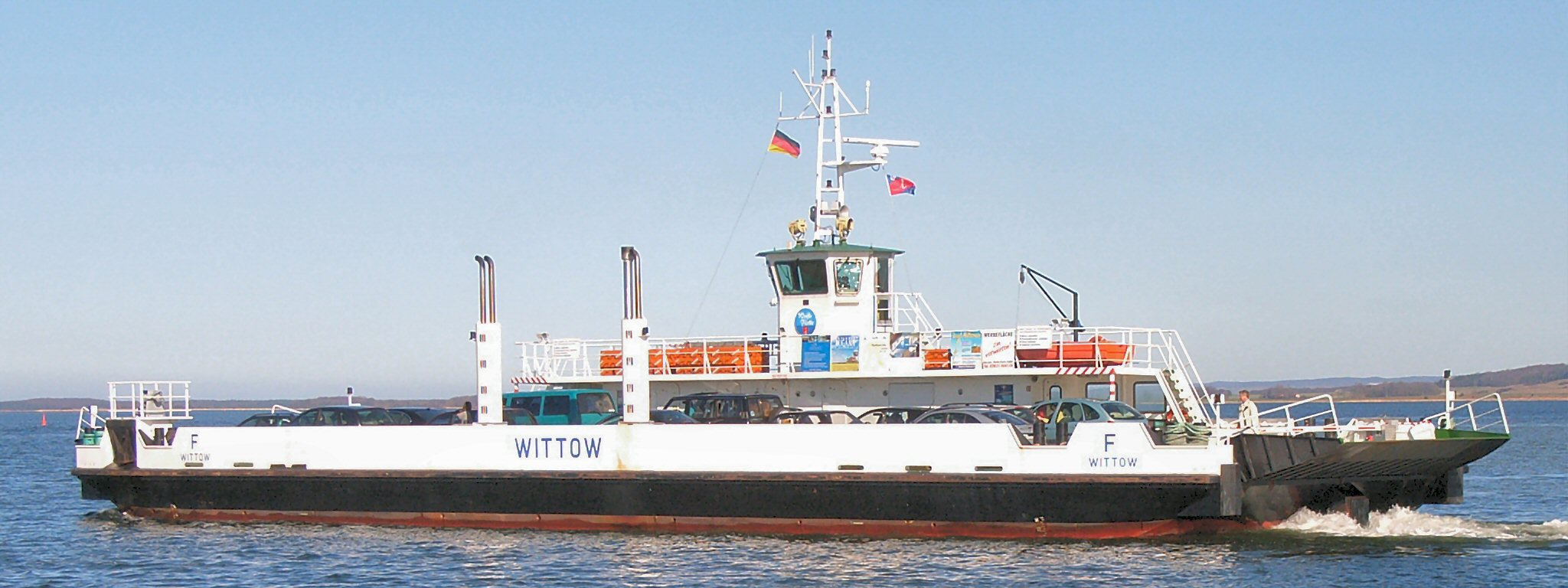 Die Wittower Fähre verbindet ganzjährig die Südseite mit der Nordseite der Insel Rügen und erspart den Umweg über Lietzow. Die Wittower Fähre gehört zur Weißen Flotte Stralsund, die hier die Autofähre “Stahlbrode” einsetzt. Als Ersatzfähre dient die “Wittow”. Die Fähre pendelt von 6:00 Uhr bis 19:00 Uhr etwa alle 15-20 Minuten zwischen Nord- und Südseite.