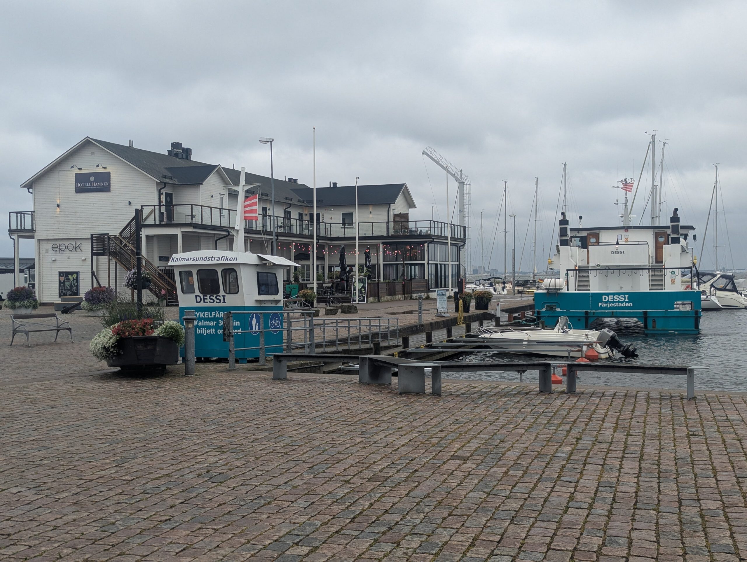Da die Ölandbrücke für Radfahrer und Fußgänger gesperrt ist, verkehrt im Sommerhalbjahr von Anfang Mai bis Mitte September die Fahrradfähre MS “Dessi” der Ressel Rederi AB zwischen Kalmar und der Insel Öland. Die Anlegestelle in Kalmar befindet sich am Tullhamnen (Zollhafen), nur wenige Gehminuten von der Innenstadt entfernt. Die Fähre verkehrt in der Hochsaison von 7:30 Uhr bis 18:00 Uhr alle 30 Minuten, mit einer Mittagspause von 12:00 Uhr bis 14:00 Uhr. Die Überfahrt über den Kalmarsund dauert knapp 30 Minuten und ist kostenpflichtig. Das Foto zeigt die “Dessi” vor ihrem Anleger in Kalmar – Foto: AleWi, CC BY-SA 4.0 <https://creativecommons.org/licenses/by-sa/4.0>, via Wikimedia Commons