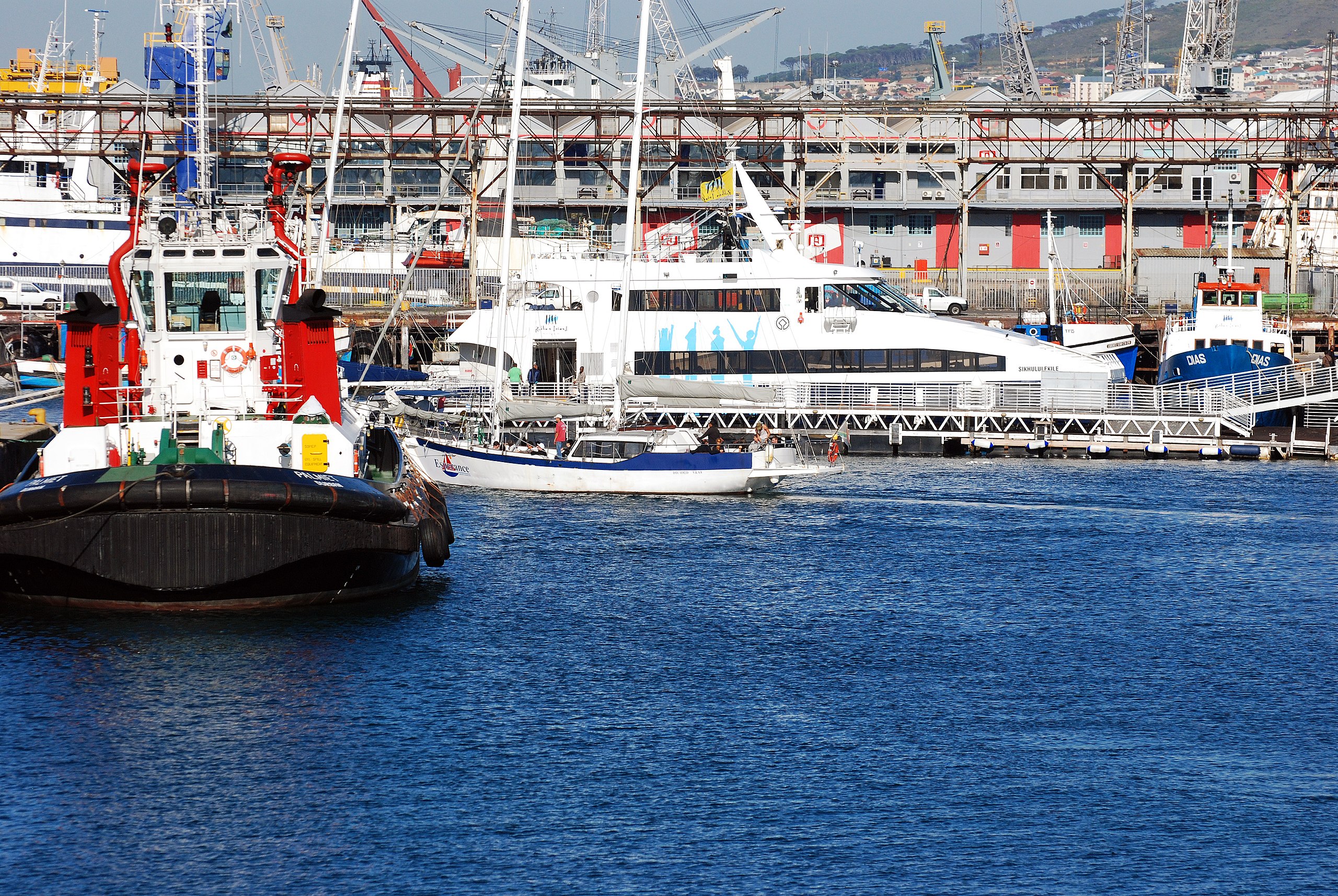 Der Fähranleger an der Victoria & Alfred Waterfront mit dem Katamaran HSC “Sikhululekile” – Foto: Harvey Barrison from Massapequa, NY, USA, CC BY-SA 2.0 <https://creativecommons.org/licenses/by-sa/2.0>, via Wikimedia Commons