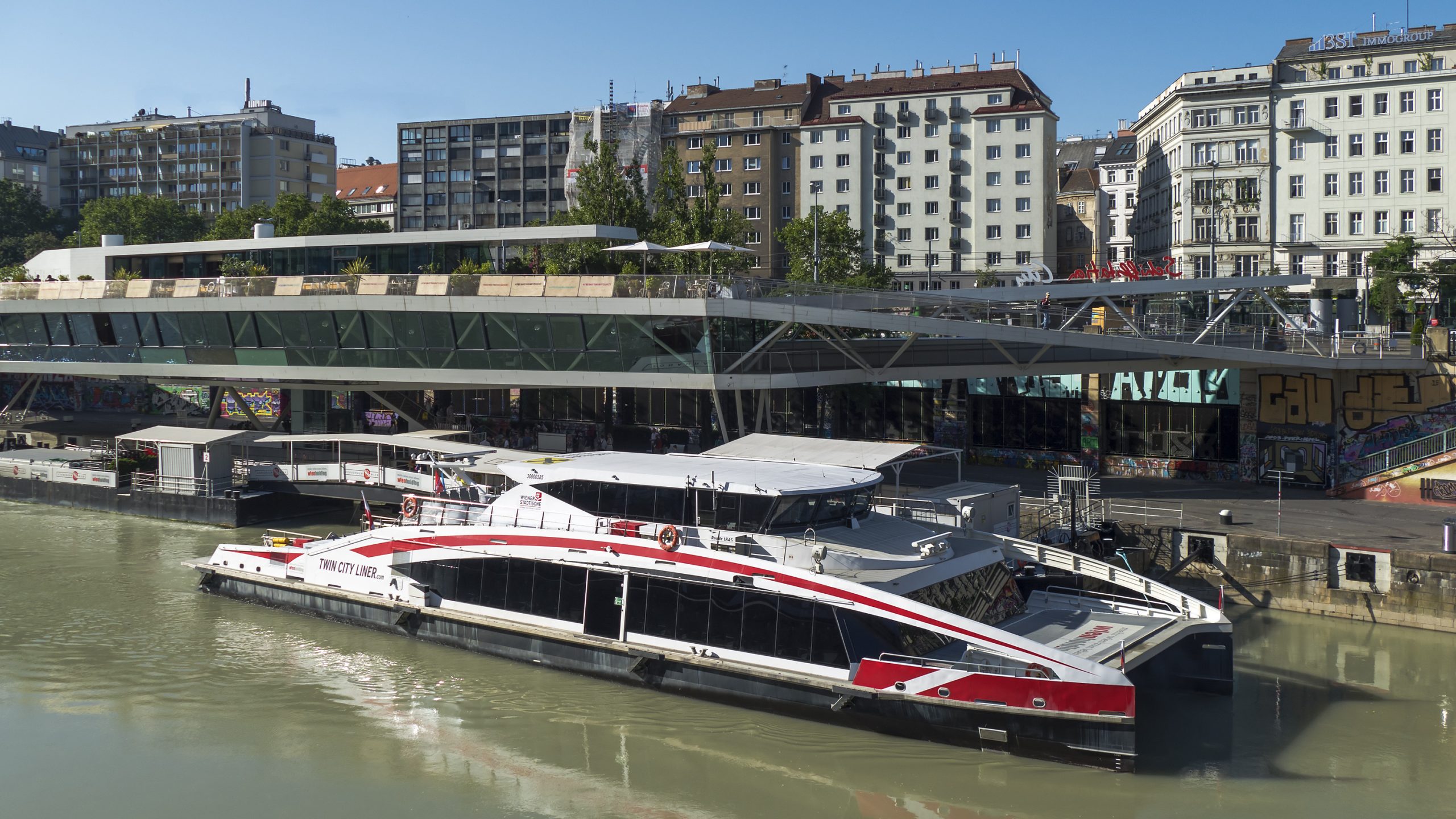 Die Anlegestelle “Stephansplatz” am Donaukanal in Wien befindet sich direkt in der Innenstadt, nur wenige hundert Meter vom Stephansdom entfernt. Auch in Bratislava legt der Twin City Liner in unmittelbarer Nähe zum Zentrum an. Da die Fahrtzeit Wien – Bratislava nur 75 Minuten beträgt, bietet sich hier die faszinierende Möglichkeit, zwei Hauptstädte an einem Tag zu besuchen.