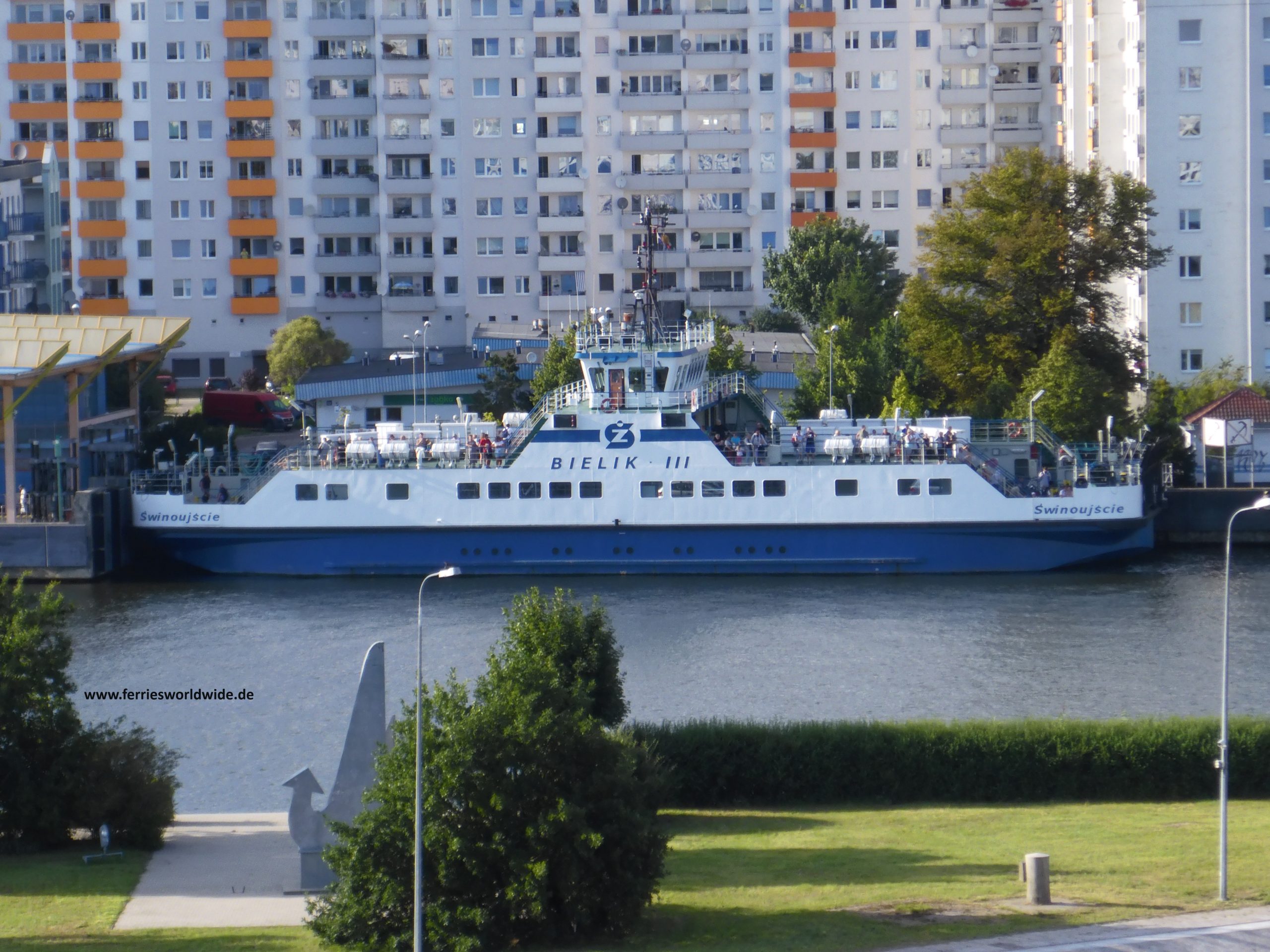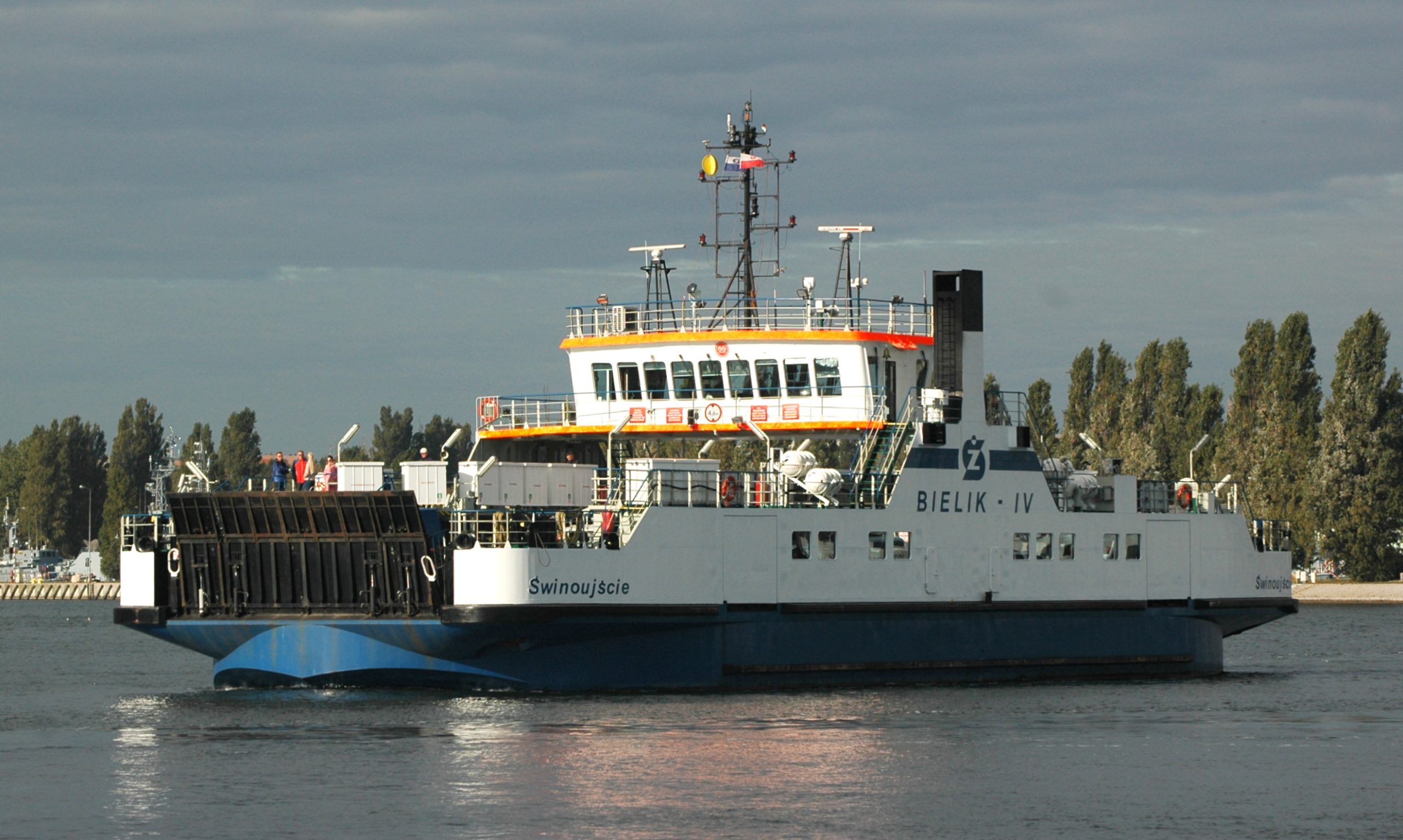 Im Zentrum von Swinemünde pendelt eine Autofähre über die hier etwa 350 Meter breite Swine in Świnoujście. Sie verbinden den im Osten der Insel Usedom liegenden Teil der Stadt mit dem auf der Insel Wolin liegenden Stadtteil Warszów. Die Fährpassage dauert circa acht Minuten. Die Fähren verkehren von 3:50 Uhr bis 22:30 Uhr. Im Einsatz sind 4 baugleiche Fähren des Typs Bielik, die die Namen “Bielik I” bis “Bielik IV” tragen. Allerdings pendeln i.d.R. nur zwei Fähren gleichzeitig über die Swine. Seit der Eröffnung des Swinetunnels 2023 hat sich die Bedeutung der Swinefähre deutlich reduziert. In der Zeit von 4:00 Uhr bis 22:00 Uhr können diesen Fährübergang nur Fahrzeuge mit dem Kennzeichen ZSW oder Fahrzeuge mit einer speziellen Kennung nutzen. Den Fährverkehr der KARSIBÓR-Fähren können alle PKW und LKW (hinsichtlich der Herkunft) uneingeschränkt nutzen. Beide Fährübergänge sind kostenlos. Fußgänger, Fahrradfahrer usw. können beide Fährübergänge uneingeschränkt und kostenlos nutzen. Betreiber der Stadtfähre ist die Zarząd Dróg Miejskich i Żeglugi w Świnoujściu (deutsch: Verwaltung für Stadtstraßen und Schifffahrt in Swinemünde).